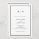 Ces invitations de mariage élégantes et modernes, toutes en une seule, présentent un design de texte minimaliste simple en noir et blanc, avec un cadre classique à la frontière. Ajoutez vos initiales ou votre monogramme pour les rendre complètement vôtres. L'arrière des invitations comprend la chambre pour vos détails mariages (informations de réception, hébergement à l'hôtel, etc.) et rsvp (y compris un code QR scannable pour que les clients puissent répondre en ligne via votre site mariage.)
