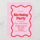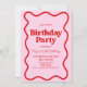 C'est une invitation de fête d'anniversaire rose rouge rétro Wavy frontière!