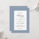 La conception de mariage Dusty Blue présente une belle bordure chic en bleu poussiéreux qui comprend une bordure blanche élégante et petite. La calligraphie et l'écriture sont de couleur gris charbon sur fond blanc. Un modèle moderne pour la date et l'année complète le design de calligraphie unique. [REMARQUE : La date du mariage affichée comme indiqué, utilise la barre verticale ou la ligne qui se trouve au-dessus du \ sur un Mac ou un PC ou sur votre appareil intelligent avec les caractères spéciaux. Vous pouvez également personnaliser avec n'importe quel autre caractère de votre choix.] Envoyez un courriel à invitationsuites@gmail.com pour toute question ou demande personnalisée.