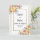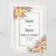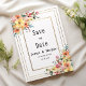 Elegant, modern white gold, orange, and pink hand-painted geometrical watercolor floral country wedding Save the Date invitations are perfect for any classy and sophisticated girl. This design is ideal for a trendy and stylish party event. Customize this design with your own message and personalized information. All designs are printed.