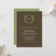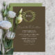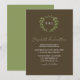 Wedding collection with earth tones of green and dark brown. A gold geometric monogram crest surrounded by botanical leaves.