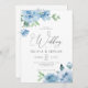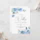 Elégant mariage fleuri dans une seule invitation. Faire-part de mariage botanique moderne avec script de calligraphie et fleurs d'aquarelle peintes à la main en bleu clair bébé avec des détails et code QR RSVP à l'arrière. Vous pouvez personnaliser le libellé, le style de police, la couleur et la taille devant et derrière l'invitation. N'hésitez pas à me contacter pour les articles correspondants.