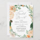 Belles invitations brune nuptiale avec une élégante couleur pastel neutre aquarelle botanique cadre de verdure fleurie dans les tons doux de la terre de pêche, orange, doux rougir, jaunes, et beaucoup de nuances de vert sauge à vert clair et profond. Vos détails personnalisés s'affichent dans une mise en page surélevée de typographie qui place l'invité d'honneur au centre.
