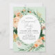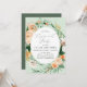 Belle invitation de fiançailles avec une élégante couleur pastel neutre aquarelle botanique cadre de verdure fleurie dans des tons doux de terre de pêche, orange, doux rougir, jaunes, et beaucoup de nuances de vert sauge à vert clair et profond. Vos détails personnalisés s'affichent dans une mise en page surélevée de typographie qui place l'invité d'honneur au centre.