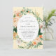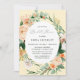 Belles invitations à la douche nuptiale avec une élégante aquarelle couleur neutre pastel botanique cadre de verdure fleurie dans des tons doux de terre de pêche, orange, doux rougissant, jaunes, et beaucoup de nuances de vert sauge à vert clair et profond. Vos détails personnalisés s'affichent dans une mise en page surélevée de typographie qui place l'invité d'honneur au centre et à l'avant.
