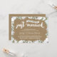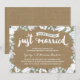 Cette invitation élégante et moderne pour les 70 ans de mariage présente une belle calligraphie au pinceau, de magnifiques fleurs bleues et blanches, une typographie qui indique "Juste mariés (il y a soixante-dix ans !)", et un fond en papier kraft imprimé.