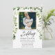 Moderne Élégante calligraphie, Aquarelle Botanique Eucalyptus Vert, Faire-part de mariage photo - Gold Frame