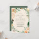 Belles invitations pour douche bébé avec une élégante aquarelle couleur neutre pastel botanique cadre de verdure fleurie dans des tons doux de terre de pêche, orange, doux rougissant, jaunes, et beaucoup de tons verts de sauge vert à vert clair et plus profond. Vos détails personnalisés s'affichent dans une mise en page surélevée de typographie qui place l'invité d'honneur au centre.
