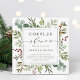 Cette invitation à la douche en couple est composée d'eucalyptus peints à l'aquarelle, de feuilles verts, de baies rouges, de branches de pins et d'un cadre carré vert avec calligraphie élégante. Pour une personnalisation plus avancée de cette conception, cliquez sur le lien "Customiser plus loin". Des articles correspondants sont également disponibles.