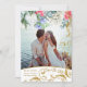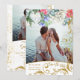 © 2022 Socialite Designs & LICENSORS. Une élégante couleur or et aquarelle 2 photos sauvent la date avec de magnifiques tourbillons décoratifs à l'allure de parties scintillant botanique et des fleurs d'aquarelle. Belle calligraphie de script et fleurs d'aquarelle en bleu, blanc, rose, rouge et vert. Faux look or arrose confetti sur le dos.