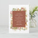 Cette belle faire-part de mariage d'inspiration boho présente des plantes botaniques séchées à l'aquarelle peintes à la main (palmiers, plumes et fleurs du désert) dans les tons vert, tan, rose roux et doré. Votre texte se distingue sur un rectangle couleur rouille en terre cuite - la couleur peut être customisée, si désiré. Parfait pour un boho d'automne, un mariage à thème rustique, tropical ou africain ! Pour des demandes de design ou de produits personnalisés, veuillez me contacter (Tracey) à l'adresse orabellaprints@outlook.com.