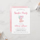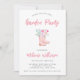Une invitation à la fête d'anniversaire assez moderne avec l'illustration d'une paire de bottes de pluie couleur rose avec des fleurs pastel.