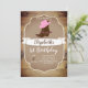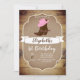 Botte rustique cowgirl et design casquette rose cowgirl avec planches en bois imprimer design arrière - plan invitation de premier anniversaire. Idéal pour une jolie fête à thème occidental.
