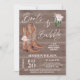 Bottes florales roses rustiques et bubbly Bridal Shower Invitation Boots et bulle d'invitation à la douche nuptiale comprenant un cactus, des bottes de cowgirl et quelques arrangements floraux roses sur un arrière - plan d'image de faux bois. Cette bottes et bridales bubbly invitation à la douche comprend également certains non modifiables calligraphie moderne texte et séparateurs de texte.