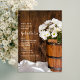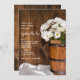 Invitée Invitation à honorer la mariée d'être avant de se marier avec le décontracté et charmant seau en bois de White Daisies Country Barn Bridal Shower Invitation. Cet élégant et rustique Wedding shower à thème de ranch personnalisé dispose d'une numériquement photo fleurie surannée pittoresque d'un seau en bois rempli de fleurs de marguerites blanches et d'un patiné arrière - plan en bois de grange brune.