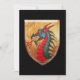 La peinture du picotin de Linda Baysinger d'un dragon de type européen vert et rouge, sur un bouclier d'or. Grandes invitations pour votre partie de thème de la Renaissance ! Ajoutez juste votre propre texte sur le dos !