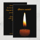 Envoyez cette invitation élégante pour un événement très spécial, ou juste une fête amusante. Elle comporte une photographie simple en nature morte d'une bougie marron avec une belle flamme aux nuances de blanc, jaune, or et orange. Elle est posée sur un fond noir pur. Une autre bougie est à l'arrière avec toutes les informations importantes. Le texte est formulé pour un anniversaire de mariage mais peut être facilement modifié pour s'adapter à votre célébration unique.