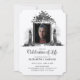 invitation de célébration de la vie avec photo encadrée de bougies noires et blanches rustiques kraft et photo au milieu avec typographie chic et élégante sur fond rustique à l'avant et noir à l'arrière.