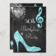 Invitation Boule à facettes et talons Noir et Turquoise 50ème