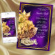 Invitation balle basket violet et or avec jolie robe or et baskets sur un bel arrière - plan violet et or. Vous pouvez modifier le texte au besoin pour votre événement. Imprimez sur papier brillant pour obtenir de meilleurs résultats.