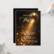Célébrez la nouvelle année avec style grâce à cette invitation de soirée du Nouvel An étincelante ! Le design présente un fond dégradé époustouflant qui passe du brun foncé au clair, rappelant un ciel de nuit festif. Des lumières dorées scintillantes et des étincelles sont dispersées partout, créant un effet scintillant qui ajoute à l'atmosphère de célébration. Une grande boule à facettes scintillante en haut reflète la lumière, renforçant l'ambiance de fête.