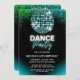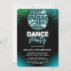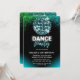 Invitation d'anniversaire rétro avec une boule disco turquoise brillante et des paillettes vertes et bleues sur fond noir. Parfaite pour votre soirée disco rétro, cette invitation donnera le ton à une célébration amusante et mémorable.