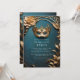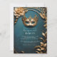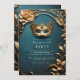 Vivez une soirée d'enchantement et d'élégance avec cette invitation à la Masquerade Ball. Ce design présente un riche arrière - plan bleu orné d'un décor d'ornement faux doré, d'un feuillage 3D et d'un captivant masque de mascarade.