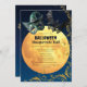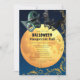 Invitation vos invités à une boule glamour Halloween masquerade avec cette magnifique invitation. Doté de superbes masques d'Halloween, d'une pleine lune, d'un arrière - plan de livre et de tourbillons de parties scintillant d'or, il donne le ton parfait pour un événement élégant et mystérieux.