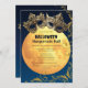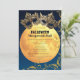 Invitation vos invités à une boule glamour Halloween masquerade avec cette magnifique invitation. Doté de masques en or, d'une pleine lune, d'un arrière - plan de livre et de tourbillons de parties scintillant en or, il donne le ton parfait pour un événement élégant et mystérieux.