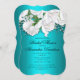 Superbe aqua et faire-part à nuptiale fleurie blanche, le design présente un beau bouquet traditionnel de roses blanches et une haleine de bébé au sommet, sur une base métallique (ou turquoise) très frappante. Au fond de l'invitation se trouve le même charmant groupe de roses, au centre de la carte. Cette invitation à la douche nuptiale très élégante et sophistiquée conviendra parfaitement à un événement sur le thème de l'aquagym ou à une fête à thème fleuri ou botanique.