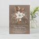 Les fleurs blanches chatoyantes sont entourées de feuilles gris, bruns et noirs neutres. Le texte blanc est une combinaison chic de lettres droites et de calligraphie. L'arrière - plan taupe les encadre parfaitement.