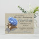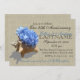 Hydrangee bleue élégante dans un coquillage avec la touche rustique d'un fond aspect toile de jute pour une fête d'anniversaire sur le thème de la plage ou toute autre occasion.
