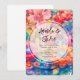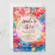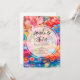 Une invitation de mariage avec une collection colorée de fleurs de printemps et d'été. Le rose, l'orange et le bleu dominent la palette de couleurs. L'arrangement floral lumineux et audacieux respire le bonheur. :)