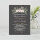 Cette invitation de mariage saisissante présente un bouquet floral luxuriant de pivoines roses, de roses crème et de verdure sauge sur une calligraphie rose doux et une typographie sérif crème sur un fond charbon riche. Le fond sombre dramatique crée un beau contraste avec les florales délicates et le texte romantique. Tout le texte est entièrement modifiable pour personnaliser les noms, les dates, le lieu et les détails de la célébration.