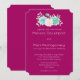 Une invitation de mariage avec un fond magenta. Un bouquet aquarelle de couleur pastel en haut. Les fleurs, les feuilles et les brindilles sont rose pastel et vert.