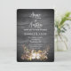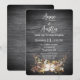 Chaîne lumineuse dans un bouquet floral de bois de cerf sur bois noir rustique pour une invitation de mariage d'automne.