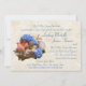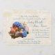 Grande coquille de conque pleine de fleurs, de lys et d'hydrangée bleue avec dollar de sable et d'étoiles de mer. Elégante faire-part de mariage à thème de plage.