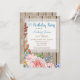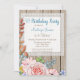 Une charmante invitation à l'anniversaire rustique avec un joli bouquet fleuri sur un arrière - plan en bois avec cadre en dentelle blanche. Parfait pour les anniversaires jalons tels que 18ème 20ème 21ème 30ème 35ème 45ème 55ème 55ème 60ème 65ème 70ème 75ème 80ème 85ème 90ème 95ème et 100 ...ou n'importe quel âge !