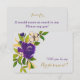 Demandez-lui d'être votre demoiselle d'honneur avec cette jolie carte d'image florale à l'aquarelle ! Elle comporte une image de bouquet de violettes, d'or pâle et de vert dans le coin supérieur gauche, avec votre texte personnalisé en bas à droite. L'image et le texte sont placés sur un fond gris clair doux. Le dos de la carte comporte des champs de texte supplémentaires pour que vous puissiez personnaliser sur le même fond gris. Cette carte correspond aux invitations de mariage et autres produits de mariage de notre magasin.