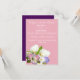 Une faire-part de mariage élégante et élégante avec un bouquet pastel et un thème rose pastel. Le texte personnalisable est en script élégant contre un arrière - plan rose. Cette invitation présente un bouquet de fleurs de mariage en grappe, dont des roses rose pâle, des hydrangées violettes, des lys Calla blancs et des orchidées blanches. Un design simple et élégant pour votre journée spéciale. Les reflets violets.