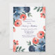 Invitation Bouquet peint en bleu et corail Partie d'engagemen