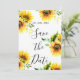 Ce design représente un motif floral aquarelle. Le thème se décline en vert, blanc et jaune. Ce design simple, minimaliste et élégant présente un fond blanc avec un bouquet de tournesols vibrant et rafraîchissant, ainsi que des arrangements de feuilles élégants réalisés dans un effet aquarelle. Des feuilles abstraites aquarelles vert clair avec des détails floraux ajoutent plus de détails à la pièce. Le design complexe convient parfaitement à un mariage d'automne, d'été ou de printemps. Disponible en grand ensemble avec de la papeterie de mariage. Des polices de calligraphie manuscrites modernes sont utilisées en lettrage doré et blanc.