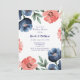 Une délicate aquarelle illustrant un bouquet mariage avec des fleurs bleu clair, bleu foncé, corail et rose clair. La palette de couleurs douces et l'aquarelle fluide créent un design romantique et élégant, parfait pour les matériaux mariages.