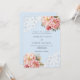 Pour une mariage élégante et romantique. Arrière - plan de couleur bleu clair décoré de fleurs d'or rose et rose, de roses et de dentelle. Personnalisez et ajoutez vos noms et détails.
