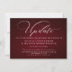 Magnifique modèle de couleur Bourgogne avec lettrage blanc et une grande calligraphie - "Mise à jour" en haut - Si vous avez envoyé les invitations et que vous avez dû suspendre de manière inattendue la date de votre grand événement, envoyez celles-ci à vos invités. Nous avons utilisé une police d'écriture manuscrite moderne pour le titre 'nouveaux plans', vous pouvez facilement modifier ce texte en tapant entre les petites cases pour conserver les enjolivures de début et de fin. Utilisez le reste des champs du modèle pour ajouter vos informations personnelles et personnaliser ce design moderne.