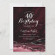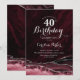 Bourgogne et argent agate 40e anniversaire invitation de fête. Design élégant et moderne avec vin de marsala, arrière - plan de géode de marbre d'aquarelle rouge foncé, faux parties scintillant argent et script de typographie. Carte invitation branchée parfaite pour une célébration anniversaire féminine élégante. Invitations Zazzle imprimées ou téléchargement instantané modèle imprimable numérique.