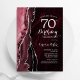 Bourgogne et argent agate 70e anniversaire invitation de fête. Elégant design moderne avec marsala rouge foncé aquarelle vin agate marbre arrière - plan, faux parties scintillant argent et typographie script police. Carte invitation branchée parfaite pour une célébration anniversaire féminine élégante. Invitations Zazzle imprimées ou téléchargement instantané modèle imprimable numérique.