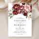 Invitation Bourgogne et bleu Aquarelle Floral Rustique Mariag
