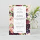 Envoyez de jolies invitations de mariage floral bordeaux et roux. Moderne, élégant, idéal pour les thèmes rustiques ou mariages. Choisissez un prénom cursif ou imprimé. Avec un arrière - plan rose.