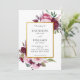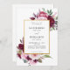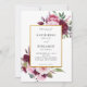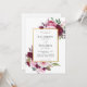 Personnalisez facilement vos invitations de mariage avec ce modèle modifiable. Il présente des illustrations florales d'aquarelle de couleur bordeaux et rose, ainsi que de la typographie minimaliste et élégante.